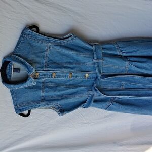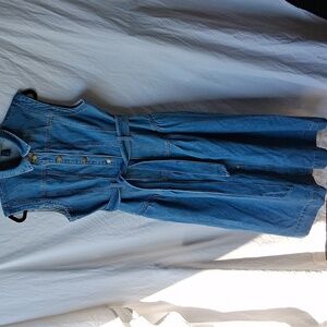 Women's Blue Denim Belted Midi Western Dress Size 8 Blue