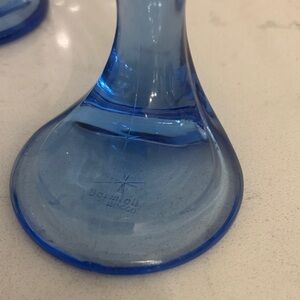 Offering a fun set of dramatic glass dessert bowls designed in Italy by Bormioli Rocco in the 1980s. Bormioli's "Jerba" pattern was known for its destinctive sculptural profile and striking cobalt blue hue. The unique design of these striking bowls includes a curved, off-center "winged" stem and wide footed base. Their versatile design makes them perfect for serving all manner of treats, including ice cream, sorbets, puddings, fruit salads, and even cocktails. A fun pop of color for the curated tablescape -- these are a must-have! Excellent condition! Dimensions 4.5ʺW × 4.5ʺD × 5.5ʺH Art Deco Period 1980s