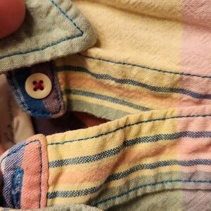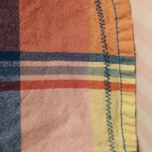 - Levis Vintage Blouse: XS rainbow plaid, cowgirl cut pockets, snap buttons western, cut zig zag stitching on bottom hem.