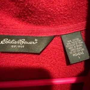 Stylish Eddie Bauer fleece red quarter-zip pullover. Perfect for casual wear.
