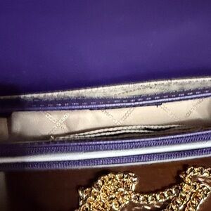 Chic violet crossbody bag by Michael Kors. Sleek design with gold accents. Ideal for stylish outings. New