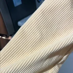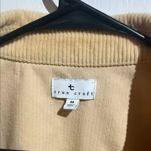 Excellent condition. It’s a very soft Shacket. The only flaw I noted was a tiny black dot on the back of the collar which should wash out. It’s like a butter, yellow color Chic corduroy blazer with a classic collar. Features a front pocket and button closure. Ideal for layering.