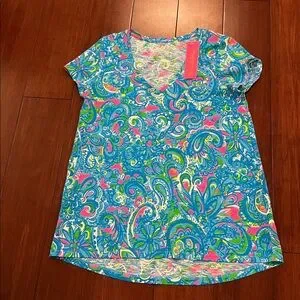 Lilly Pulitzer Etta V-Neck Seabreeze Blue Hey Gull Friend
