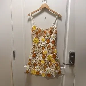 Helsi Floral Lace Fit & Flare Mini Dress in Orange and White Size XS