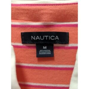Nautica Women's Summer dress sleeveless M medium Coral Pink White Striped vneck