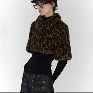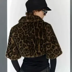 Stylish leopard print faux fur capelet. Perfect for adding a touch of glamour.