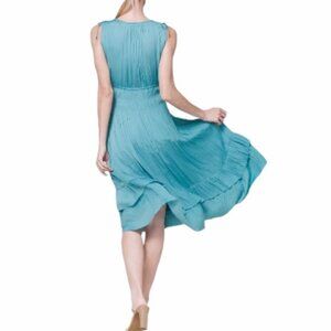 WHBM White House Black Market Midi Dress Large Pleated Sleeveless V-neck NWT