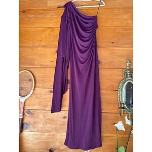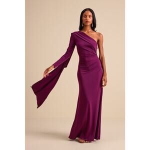 NWT Lulus Maru Plum Purple Long Sleeve One-Shoulder Sash Maxi Dress Gala Size L