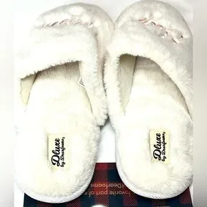 Dluxe by Dearfoams Plush Faux Fur “Super Mom” Slippers Size Large 9-10