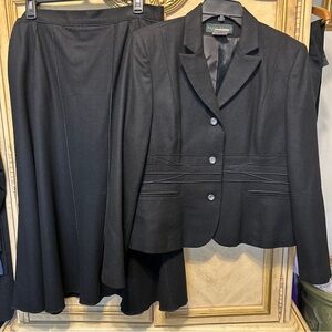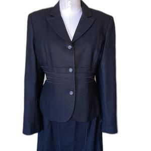 Harve Benard Black Wool Mix 2 PC SET Blazer & Long Paneled Midi Skirt