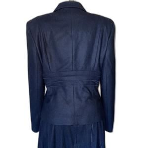 Notice the beautiful piping accent on the center of blazer and the skirt on both sides.