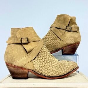 free people, boho boots, western ankle boots, woven leather, suede boots, fall boots, festival, woven style, stacked heel, distressed, grunge