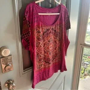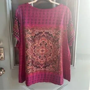 Lucky Brand Women’s Mandala Bohemian Pink Purple Persian Print Plus Oversized 3x