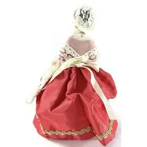 Vintage 6” European Folk Costume Doll Lace Shawl Gold Cross Red Skirt