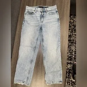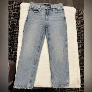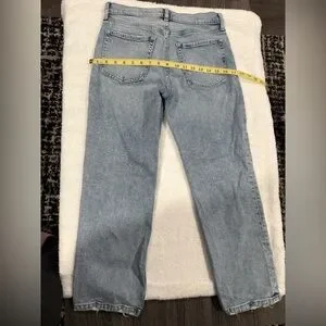 Stylish light blue jeans for a modern look. Straight fit for comfort and versatility. Ideal for casual wear. Size w27-L27