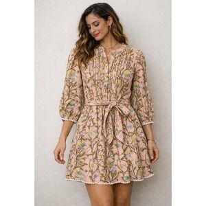 Women's Dress Millier Pink Floral Boho Cottagecore XS Peasant Lace Coquette Cute