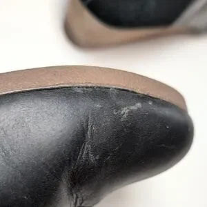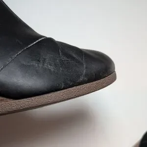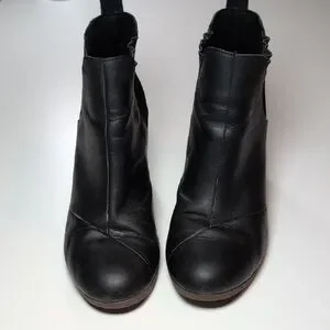 Chic black leather ankle boots. Comfortable and stylish. Perfect for any outfit. heels have some discoloration, some scuffs on the outer edge of the toes. see pics