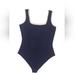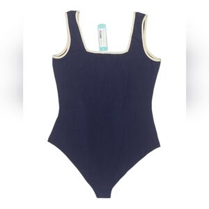Kaileigh Ribbed Contrast Trim Bodysuit – Navy/Cream – Size L