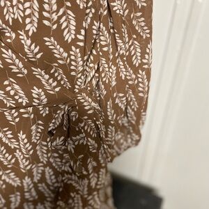 Step out in style with this elegant brown floral wrap dress. Perfect for any occasion, this dress features a flattering fit and a chic design. The soft fabric and beautiful pattern make it a must-have addition to your wardrobe.
