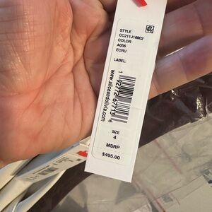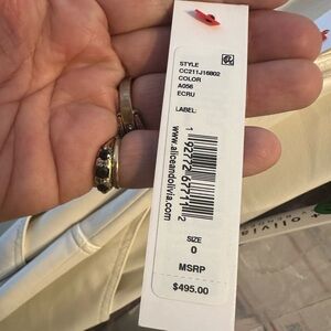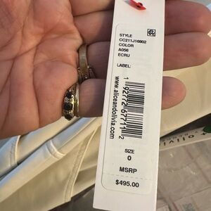 Alice Olivia neck tag has been just cut in half to prevent returns to retail store.