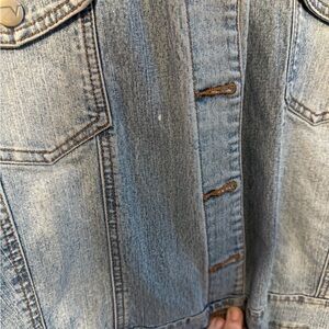 Stylish Venezia jean jacket. Features button-up front and chest pockets.