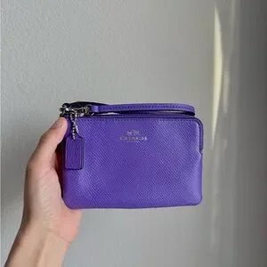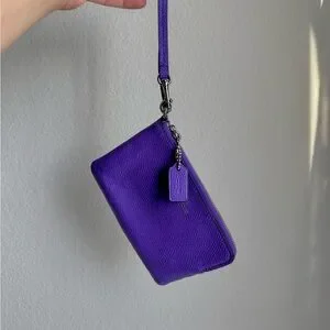 Chic Coach wristlet in vibrant purple. Compact and stylish for any outing.