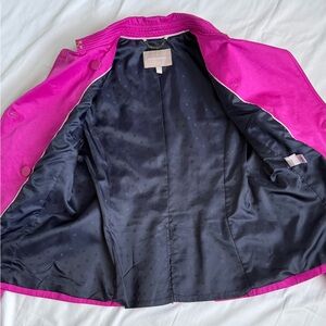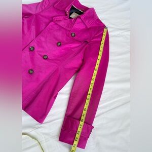 Add a bold pop of color to your spring wardrobe with this stunning Banana Republic fuchsia short trench coat! 🌸