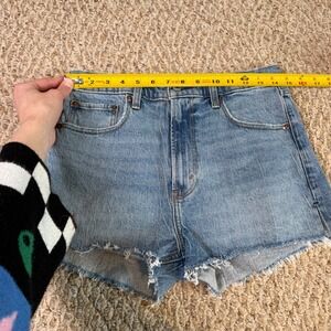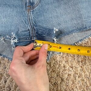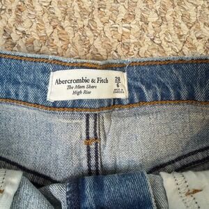 Abercrombie & Fitch The Mom Short High Rise Denim Blue 28/ 6 Raw Hem Side Slit