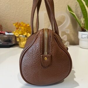 Authentic pre-loved. Tan textured leather with gold hardwares. No white tag as this was produced before 2005. Interior and exterior zippered pockets. Bent bottom as shown in photo. Very cute 😍