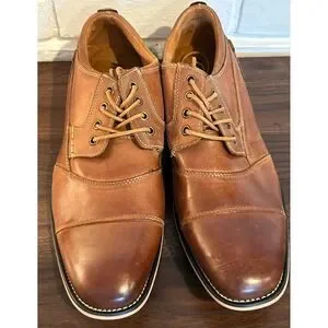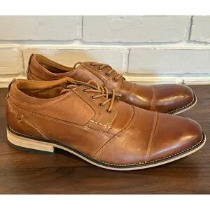NEW Kunsto Mens Brown Leather Cap Toe Oxford Dress Shoes Lace Up Size 8.5 Preppy