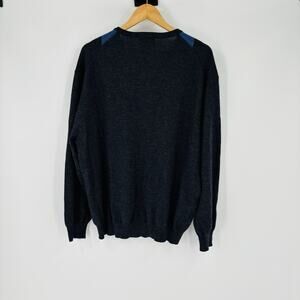 Pendleton V Neck Sweater Mens XL Gray with Blue Argyle Merino Wool Pullover