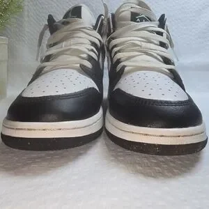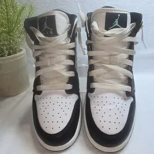 NIKE AIR JORDAN 1 MID WHITE BLACK GREEN GLOW YOUTH SIZE 5 EUC