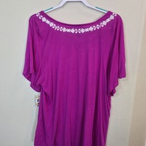 INC Concepts Magenta Embroided Boho Style Knit Tunic Blouse Top Womens Plus 3X