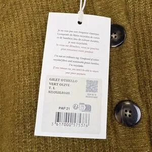 NWT Sezane Othello Sweater Cardigan Olive Green Sz L