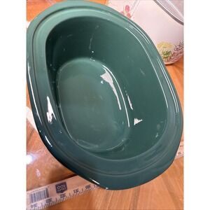 The Vintage Rival Crock Pot 3755 Slow Cooker is a 5.5 Qt Oval Herb Garden Stoneware with a green color and glossy finish. This electric slow cooker is made of stoneware, metal, and glass, featuring stay-cool handles, portability, and easy cleaning. With a capacity of 5.5 qt and three settings/programs, this unit is a versatile addition to any kitchen, offering convenience and ease of use. The Rival 3755 model is a classic choice that has stood the test of time, perfect for those looking for a reliable and stylish slow cooker for their home.