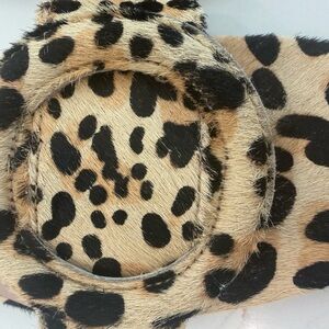 • The slip-on sandal is constructed from a synthetic upper in a snake or leopard design with a ring buckle accent at the vamp strap for effortless wear.