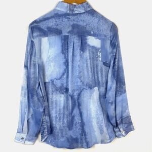 Chico's Women Long Sleeve Sheer Button Up Shirt M (8 - 10) Fairy Spring Ethereal