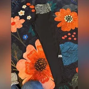 Victoria’s Secret Black Leggings with Leopard Print Waistband