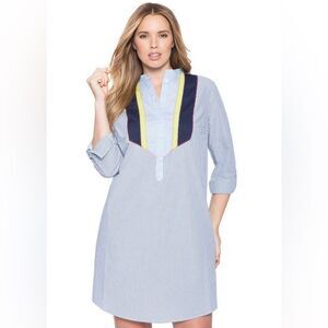 Eloquii Blue Pinstripe Colorblock Bib Shirt Dress Size 18