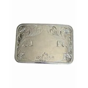 Vintage Belt Buckle Faux Silver with Flower Etching Unbranded 3 1/4 x 2”