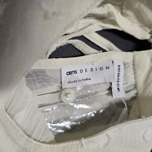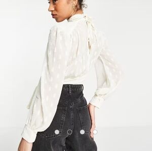 ASOS DESIGN Top High Neck Sheer Boho Textured Cream Material Tie Size 8
