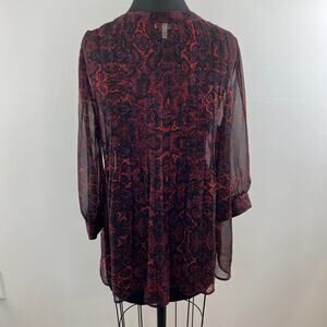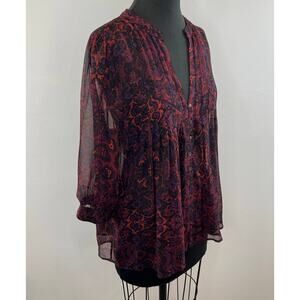 JOIE Red Black Print Long Sleeve V-Neck Button Down Silk Blouse Size Medium M