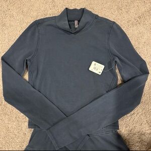 Free People Up in the Air Set - midnight navy XS, can definitely fit a small. I’m 5’7 and usually a small for reference. NWT but there’s a small line flaw on back of one of the legs that is not really noticeable while wearing. Has not been washed yet so not sure if that would help smooth it out. $128 retail