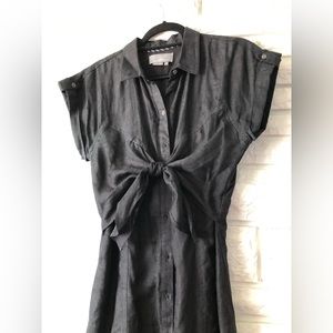 ANTHROPOLOGIE Kamryn Tie Front Black Button-Down Dress