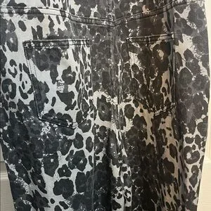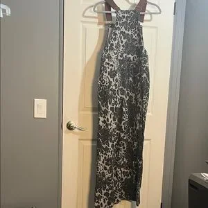 Stylish animal print jumpsuit. Features black and grey pattern. Perfect for casual outings.