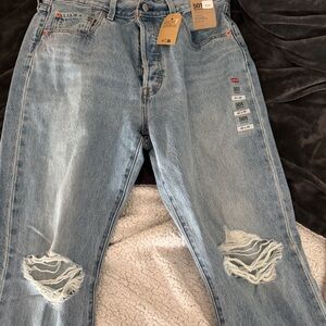 Levi's Women's Light Blue Distressed 501 Jeans