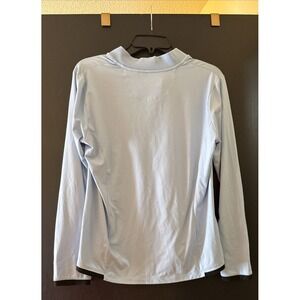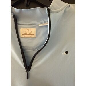 women's EP Pro Tour Tech Golf Quarter Zip Pullover in blue with black trim, size M.