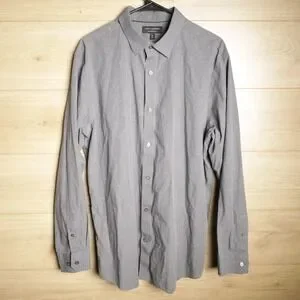 Banana Republic Mens Non Iron Slim Fit Grey Micro Dot Long Sleeve Button Up XL