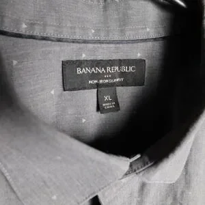 Keywords: Banana Republic, button up, long sleeve, slim fit, non iron, dress shirt, casual shirt, menswear, workwear, everyday, business casual, micro pattern, collared shirt