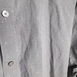 Banana Republic Non Iron Slim Fit men's long sleeve button-up shirt in a versatile grey. This shirt features a subtle micro dot pattern throughout and is designed for a slim fit. The non-iron fabric makes it easy to care for and ideal for a polished look.